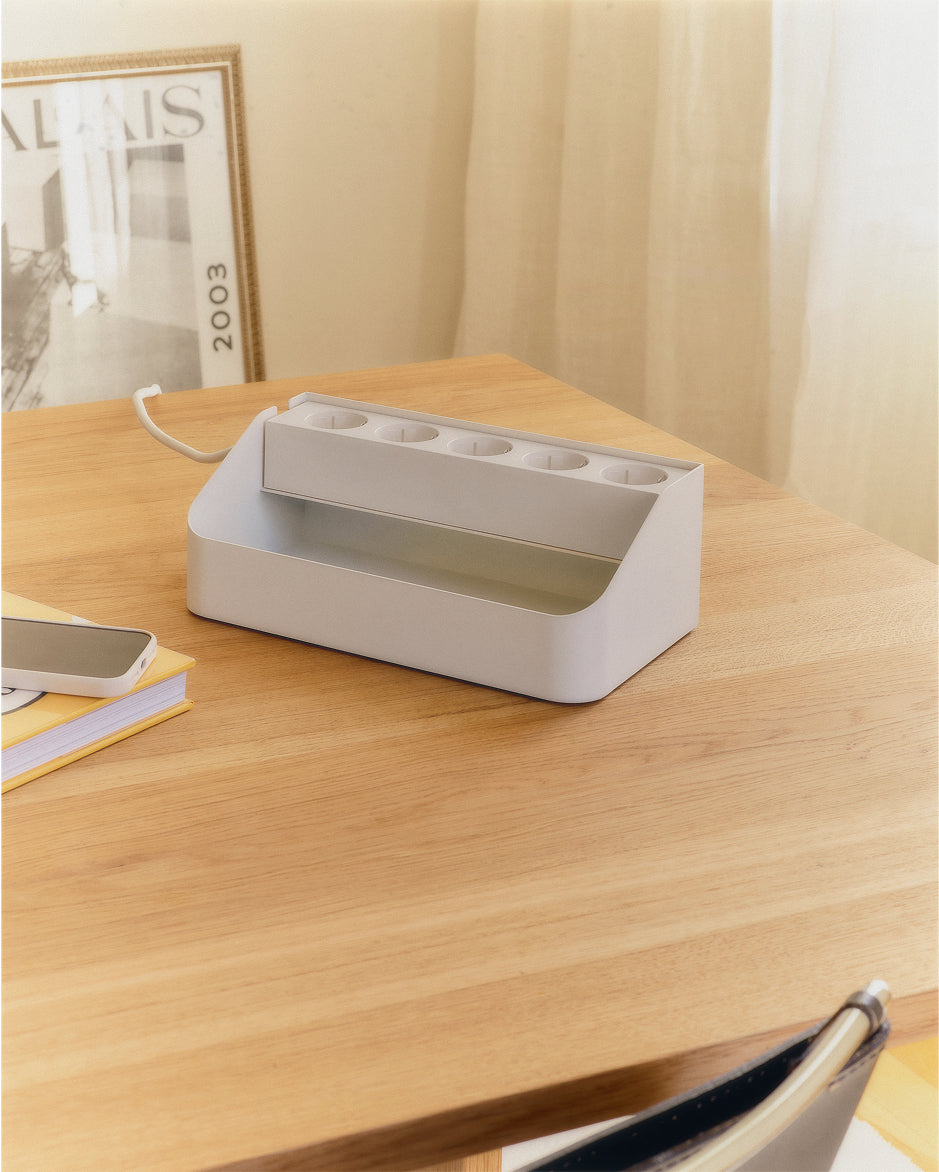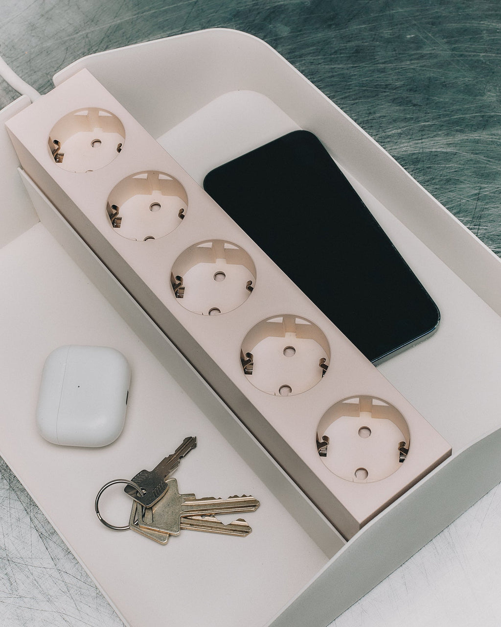Power Tray is a steel organizer designed to keep your essentials in check, cables, adapters, and whatever else clutters your workspace.