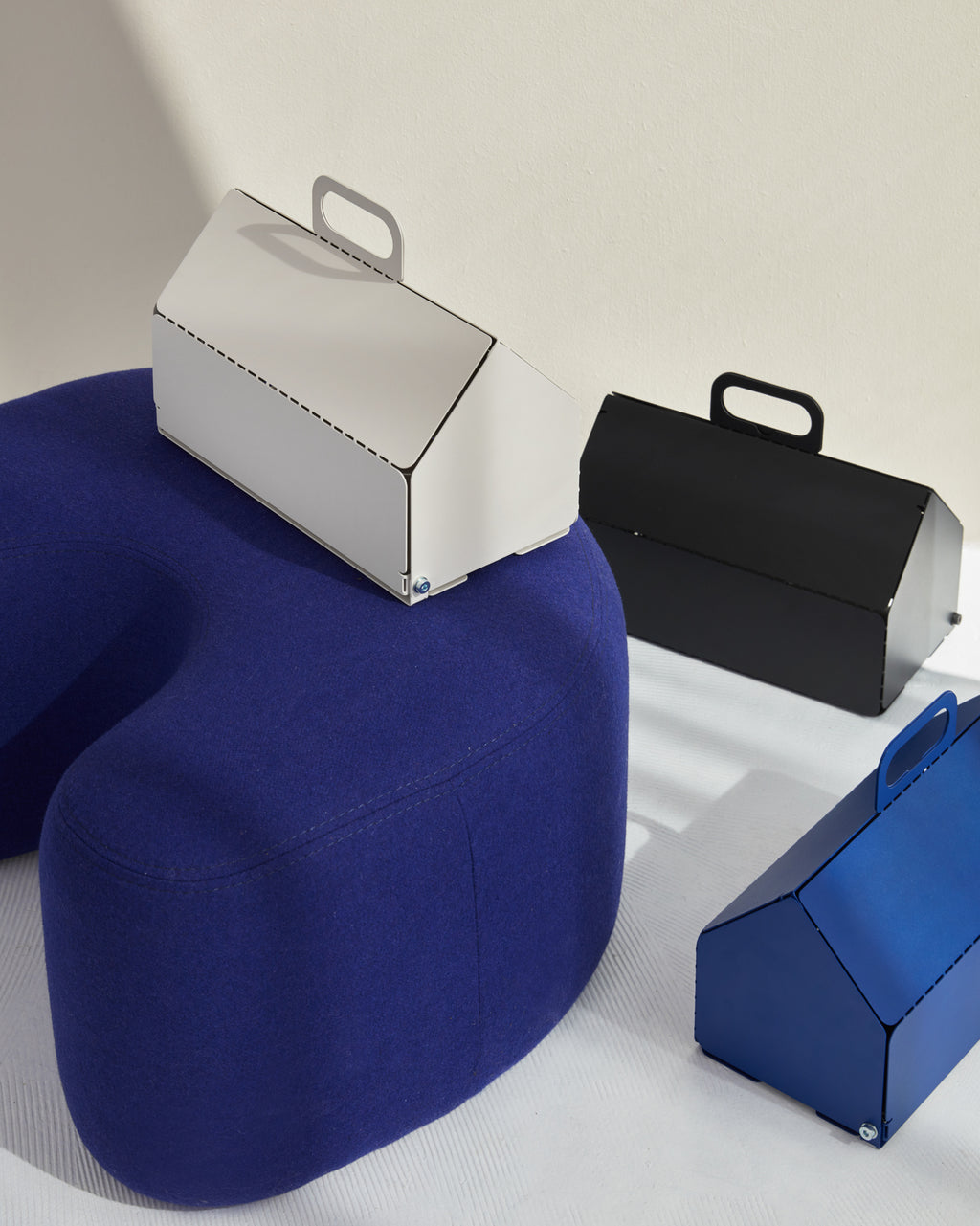 Don't want to have cables everywhere, either? Cable House is a crisp design item to hide away all your cables, power strips and accessories. It works as the perfect distributor of power in your home. Move Cable House easily from place to place with the special designed handle. Place Cable House on a shelf, on the floor or on the desk. The rubber feet gives Cable House a nice grip to any surface. Cable House is available in three colors, Charcoal, Pearl and Ultra Marine.
