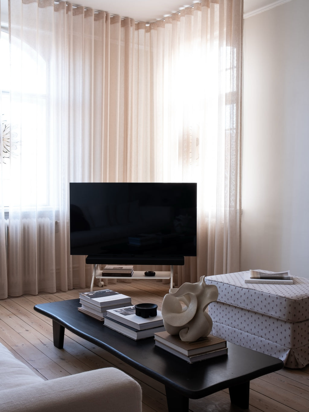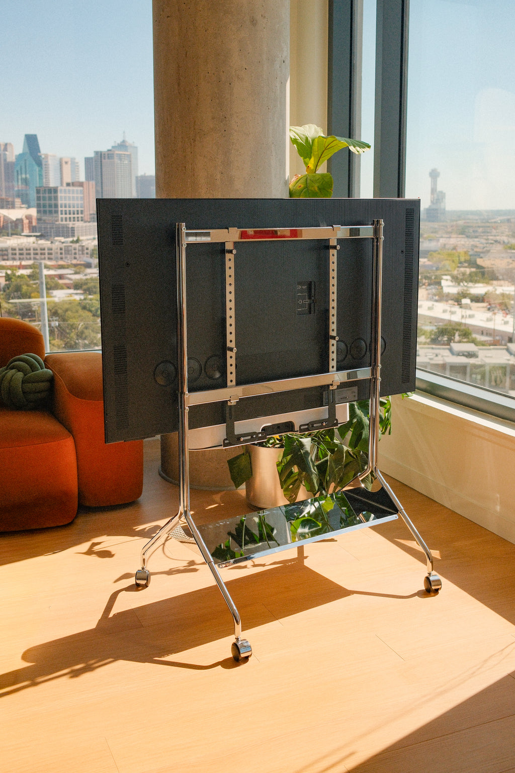 Our Soundbar Bracket Set can be mounted on all our TV stands except the Bloom model.